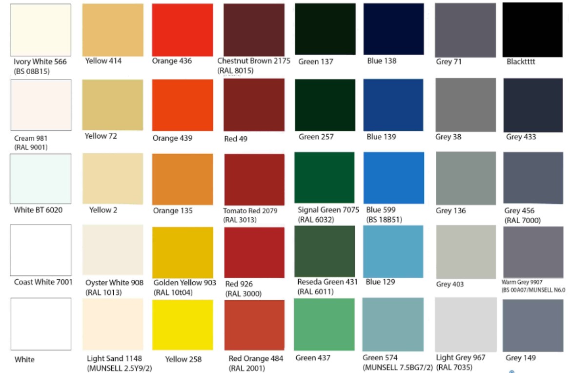 Màu sơn 2 epoxy 2 thành phần trên thị trường hiện nay rất phong phú và đa dạng. Tuy nhiên vì là loại sơn công nghiệp chuyên dùng cho các công trình nhà xưởng,… nên bảng màu thường nghiêng về tone trầm lạnh hoặc các màu cơ bản so với các loại sơn nội ngoại thất nhà cửa thông thường.