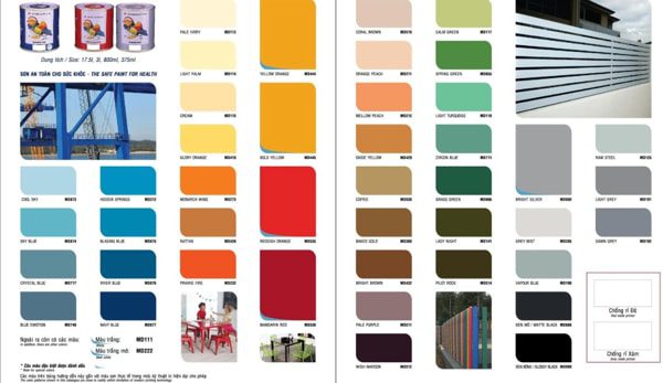 Sơn dầu có bảng màu sơn phong phú hơn rất nhiều so với sơn nước. Thông thường khi thi công chống thấm không quá yêu cầu hoặc nhiều màu sắc để lựa chọn nhưng với việc sử dụng sơn dầu để chống thấm bạn có thể mở rộng các lựa chọn màu sắc cho công trình của mình. Muabanson.vn giới thiệu cho bạn một số bảng màu sơn dầu chống thấm đẹp của các hãng ngay bên dưới!