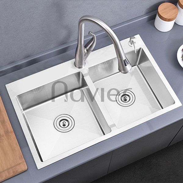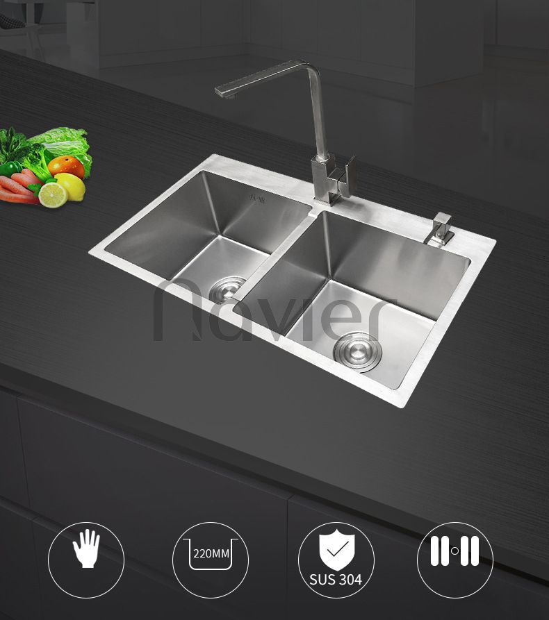 Chậu chén 2 ngăn đều Inox304 thường Navier NV-10050D