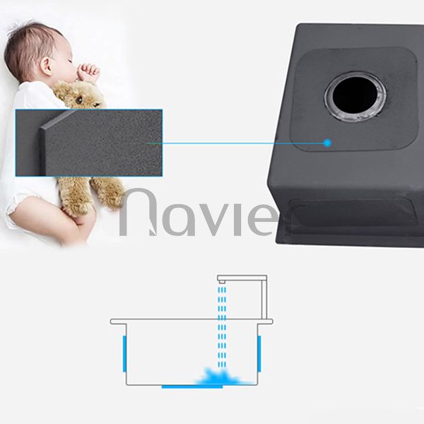Đáy chậu được gắn đệm xốp ngăn ngưng động nước, giảm thiểu tối đa tiếng ồn khi xả nước hoặc va chạm với các vật dụng.