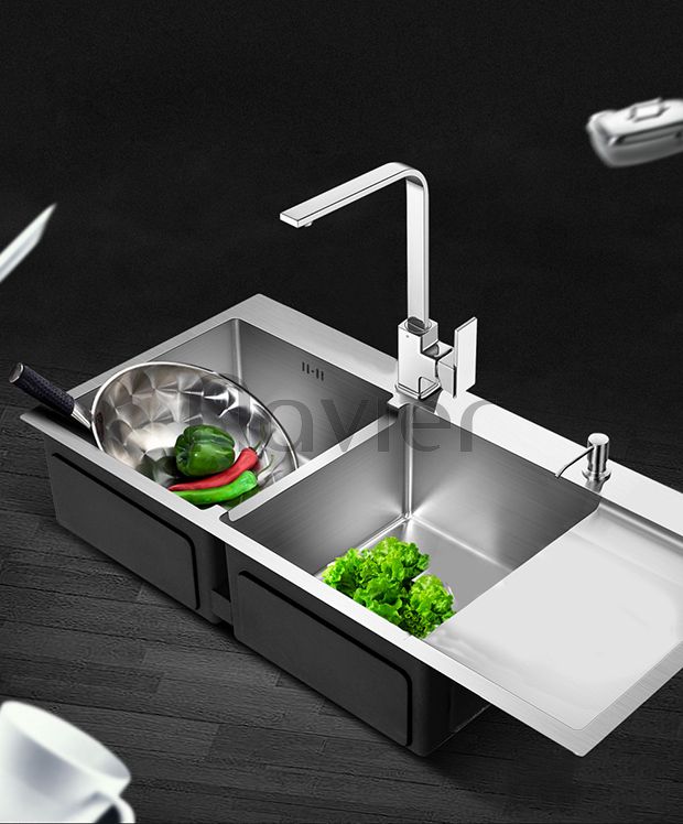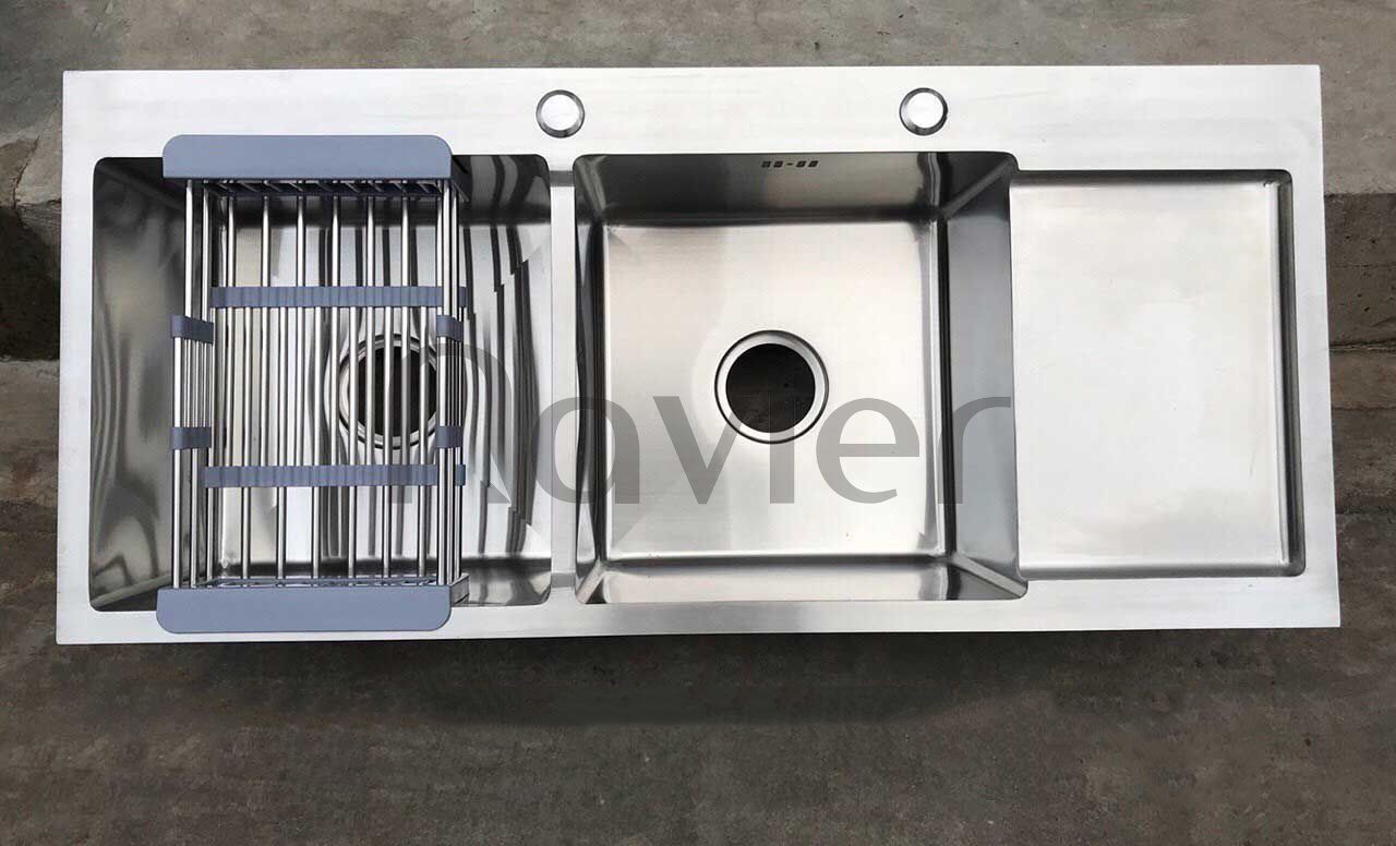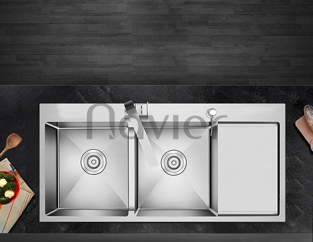 Chậu chén 2 ngăn đều liền khay inox304 thường Navier NV-10048C