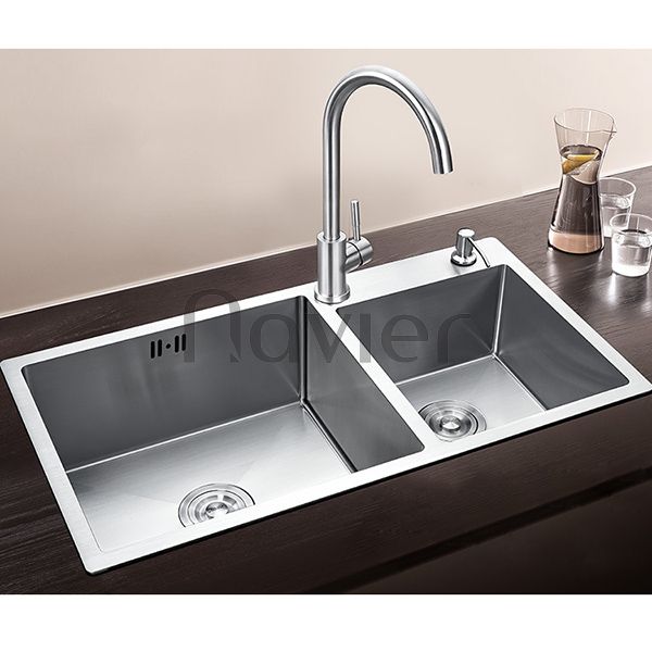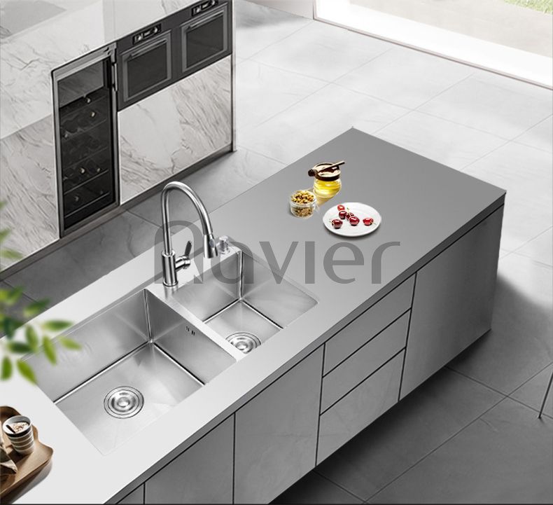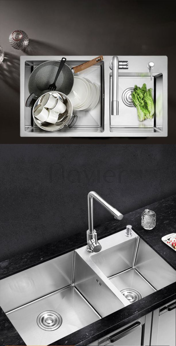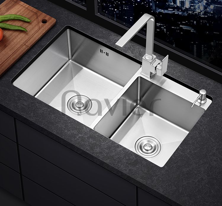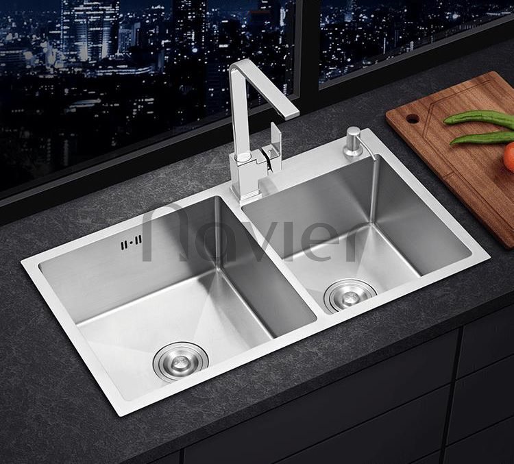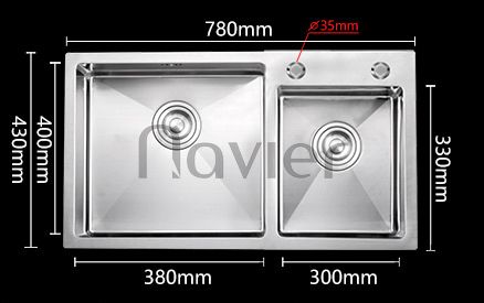 Chậu chén 2 ngăn lệch inox304 thường Navier NV-7843L