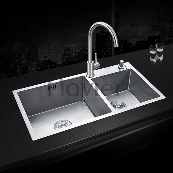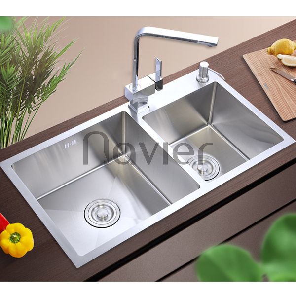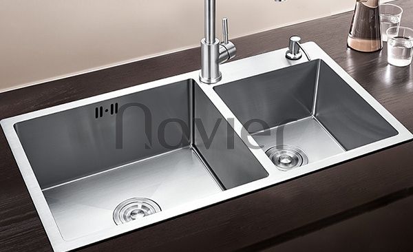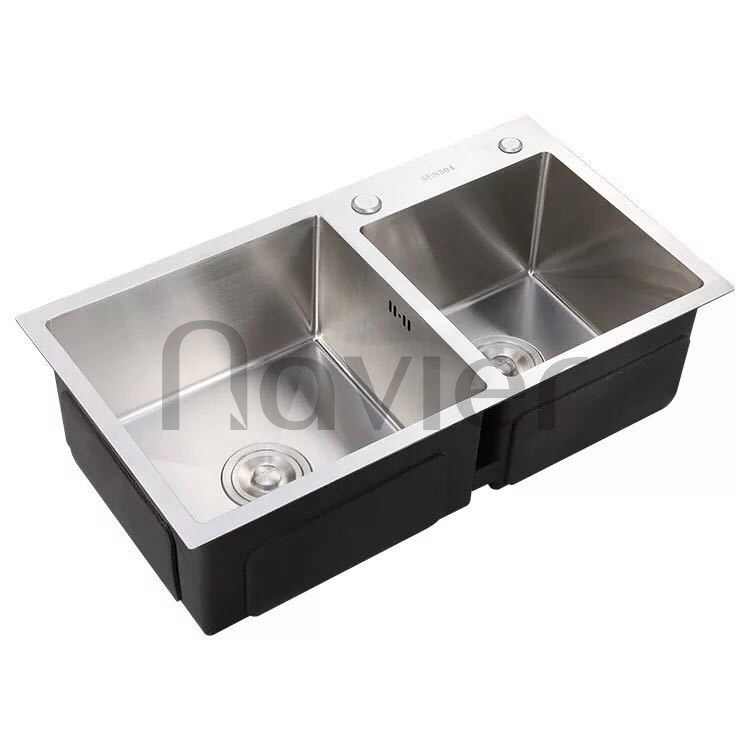 Chậu chén 2 ngăn lệch Inox304 thường Navier NV-8245L