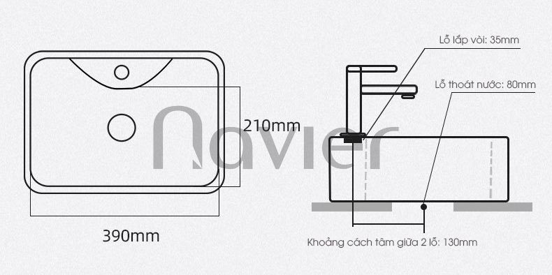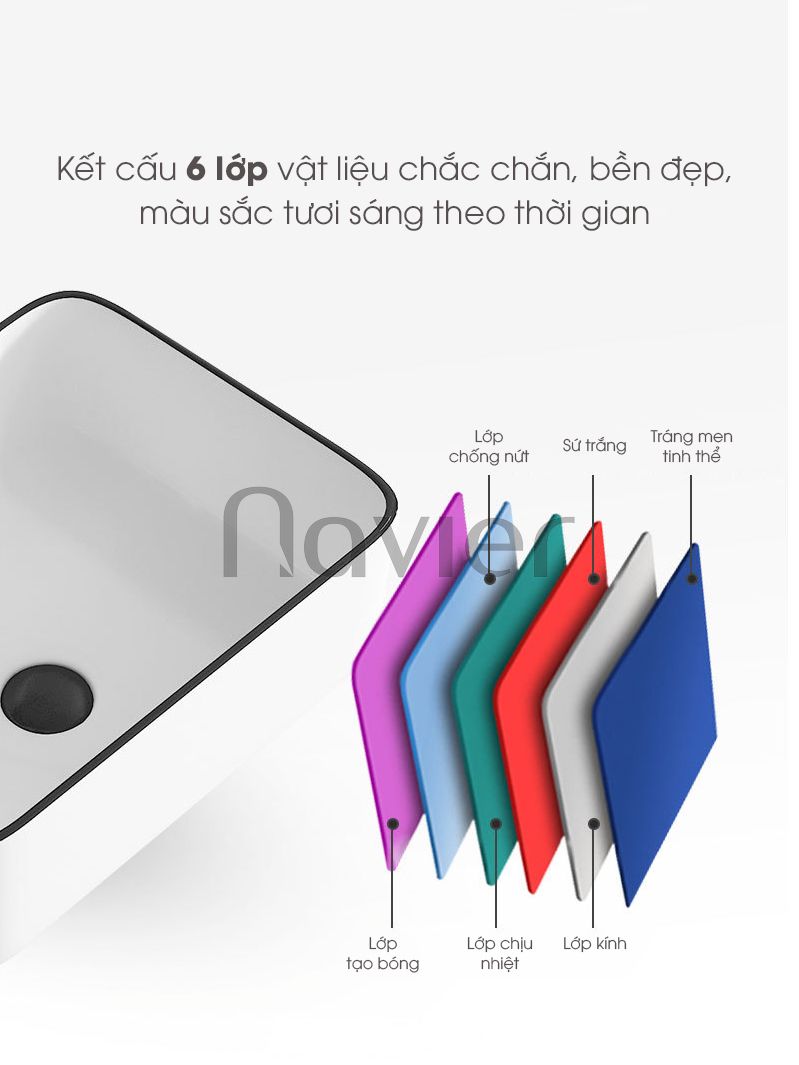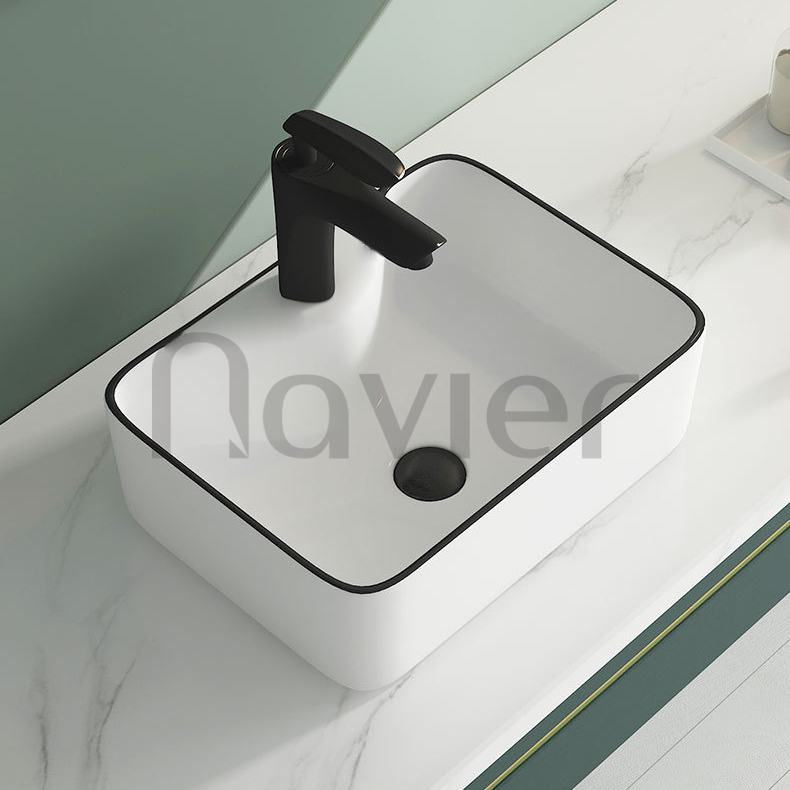 Chậu Lavabo Đặt Bàn Sứ Trắng Viền Đen Cao Cấp Navier NV-434