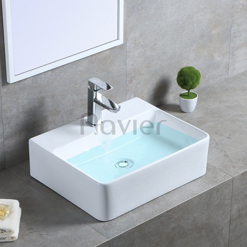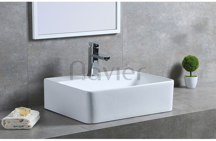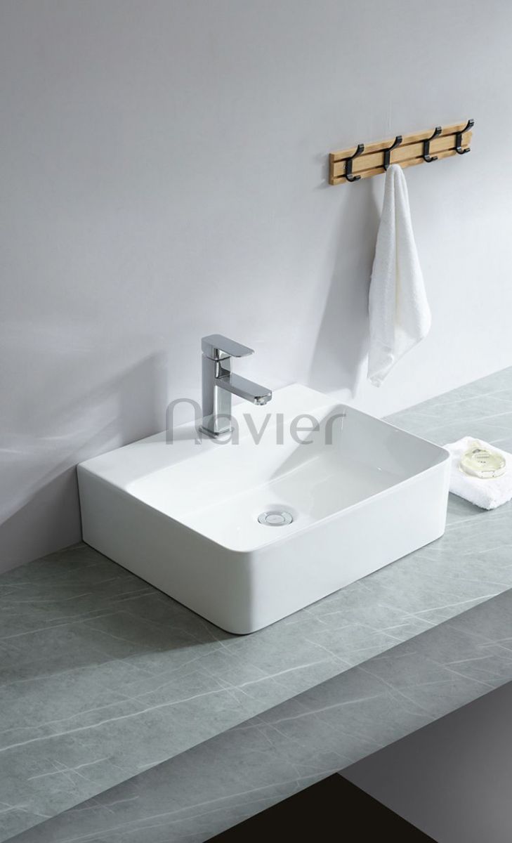 Chậu lavabo sứ trắng đặt bàn cao cấp Navier NV-409