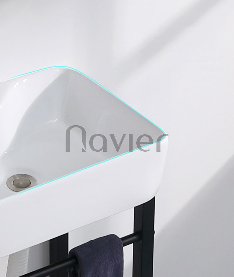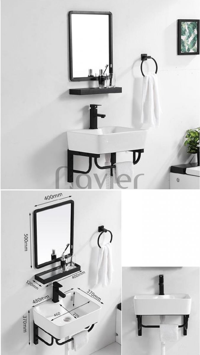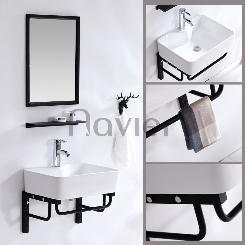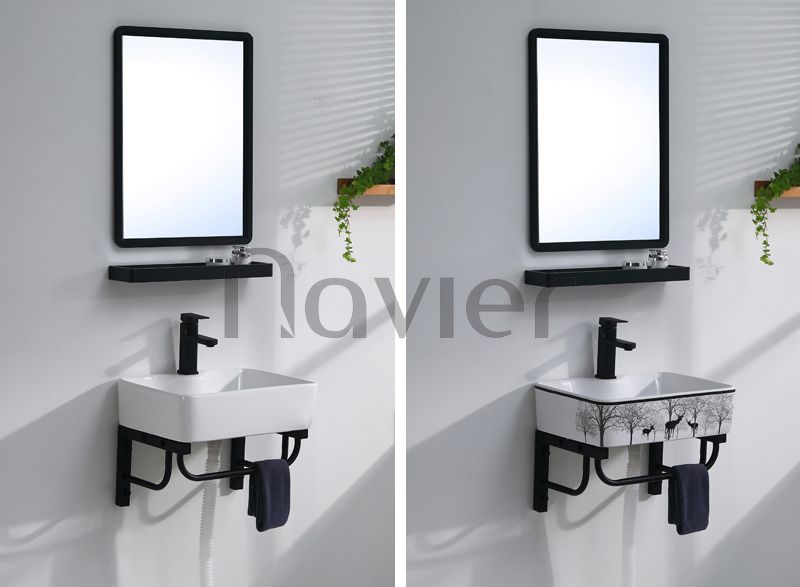 Chậu lavabo treo tường chân inox kèm gương Navier NV-1122