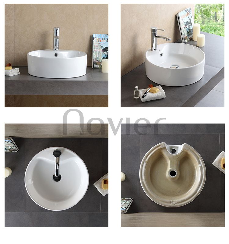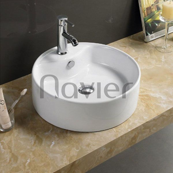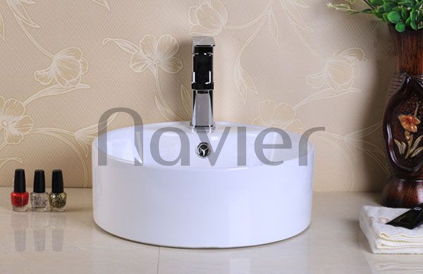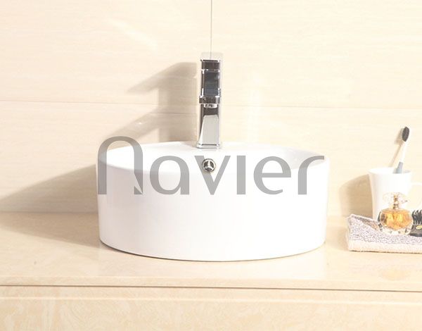 Chậu lavabo tròn đặt bàn sứ trắng Navier NV-401