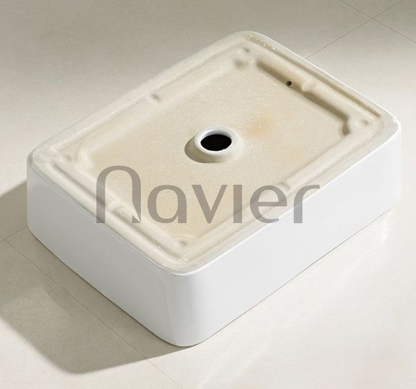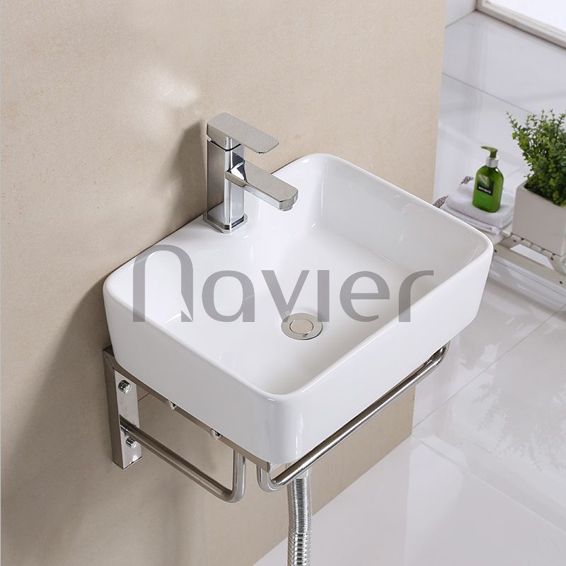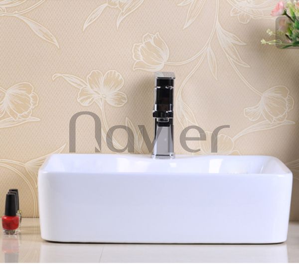 Chậu lavabo vuông đặt bàn sứ trắng chính vòi Navier NV-403