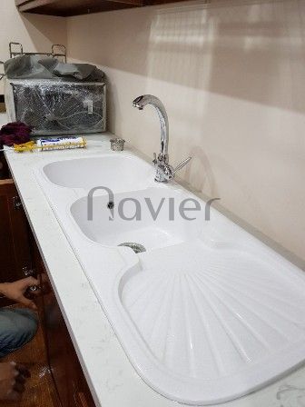 Chậu rửa chén đá nhân tạo 2 hộc đều nhau có cánh Navier NV-11447T