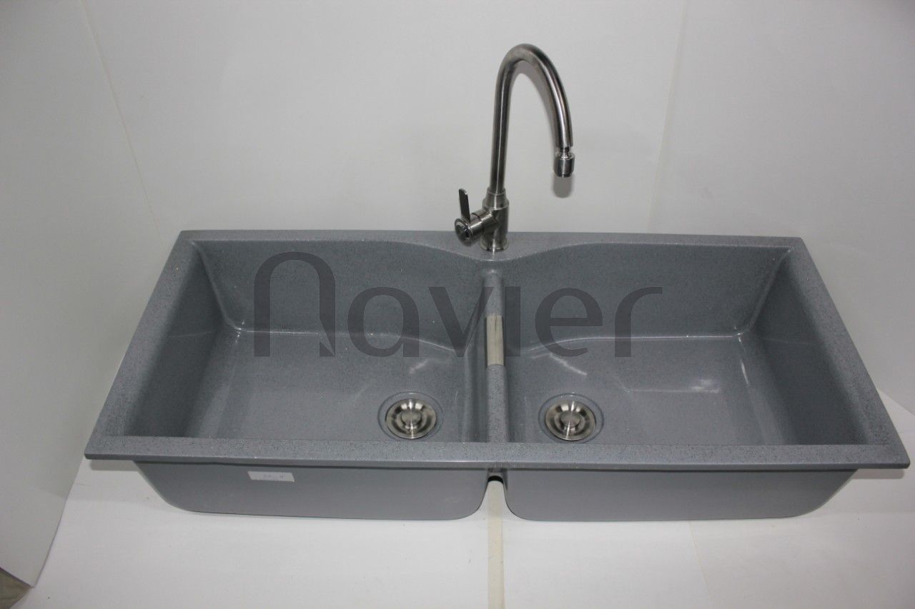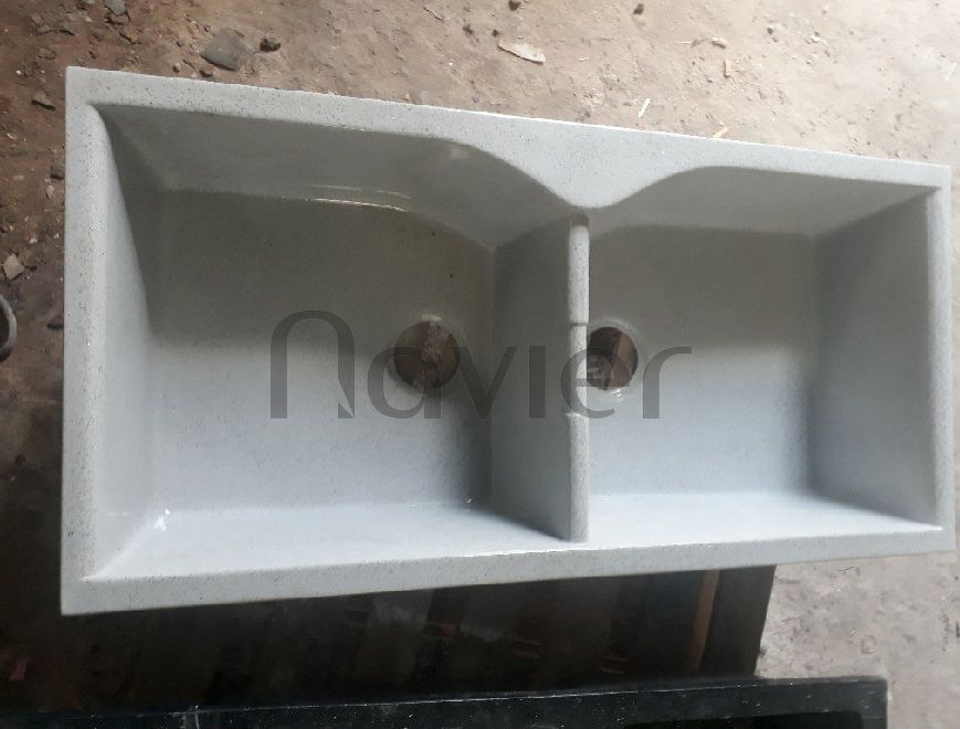 Chậu rửa chén đá nhân tạo 2 hộc đều trắng Navier NV-10049T