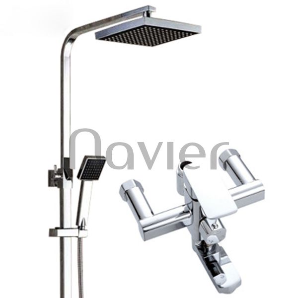 Sen cây tắm nóng lạnh thân vuông đồng thau xi mạ crome Navier NV-809